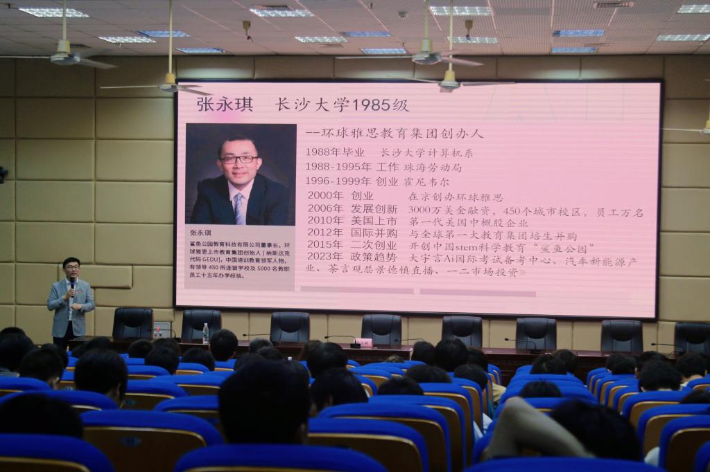 为积极推进“校友回湘”工作,充分发挥优秀校友的榜样示范作用,5月11日下午,环球雅思创始人、我校85级计算机专业毕业生、杰出校友张永琪先生应邀为计算机科学与工程学院师生进行分享交流。党委副书记刘寒波出席活动并为张永琪颁发了客座教授聘书和优秀校友荣誉证书。计算机科学与工程学院全体班子成员及200余名学生代表参加分享会。分享会由计算机科学与工程学院院长李方敏主持。