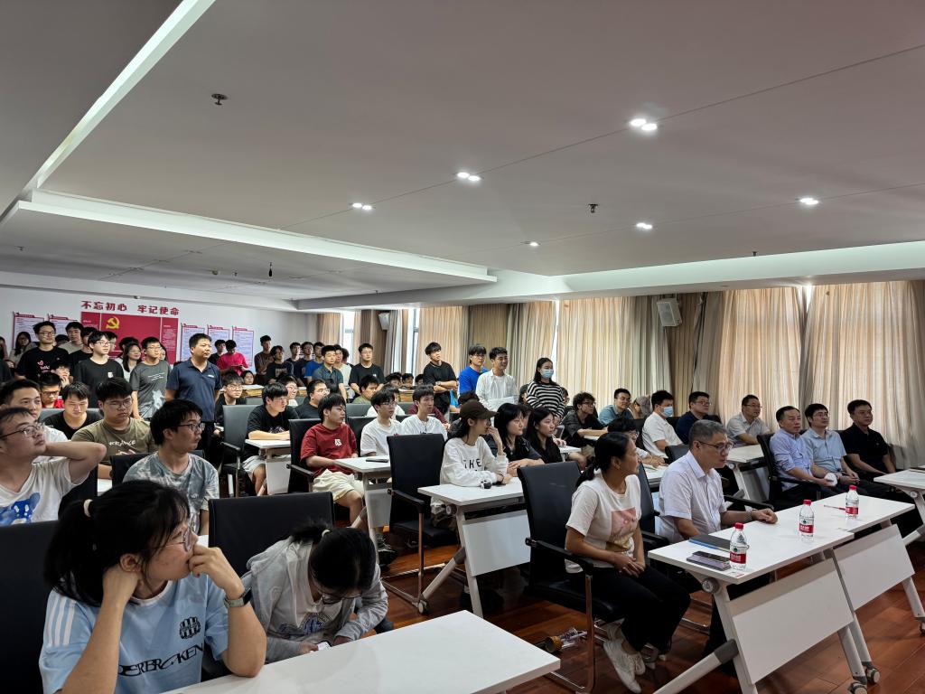 阳王东教授以自身培养研究生的经历为例,鼓励学生秉持开放的心态,树立信心,努力学习,理性选择,精心准备。他还从生活条件、学习环境和科研实力三个方面介绍了学校和学院电子信息硕士点研究生培养的优势。他强调,教育的真正价值在于塑造个人的学习能力、创新思维和坚持不懈的努力。他告诉同学们,每个人都有独特的潜力和才华,只要我们愿意投入时间和精力去挖掘和培养,就能在各自的领域取得优异的成绩。阳王东教授鼓励同学们要有信心,积极参与科研项目,勇于挑战自我,不断追求卓越,关注学校发展,要坚信通过自己的努力和学校的教育资源,我们完全有能力实现自己的人生目标。