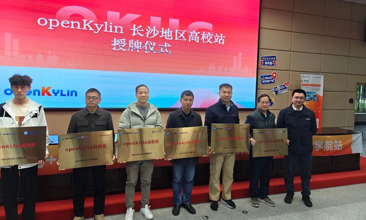 会上,openKylin长沙区域高校站授牌仪式成功举行!openKylin社区秘书长余杰为国防科技大学、湖南师范大学、长沙理工大学、长沙学院、长沙工业学院和长沙民政职业技术学院等6所高校进行openKylin高校站授牌。以此次高校站授牌为契机,openKylin社区将与各高校开展开源人才培养、技术创新、产教融合等各方面的合作。