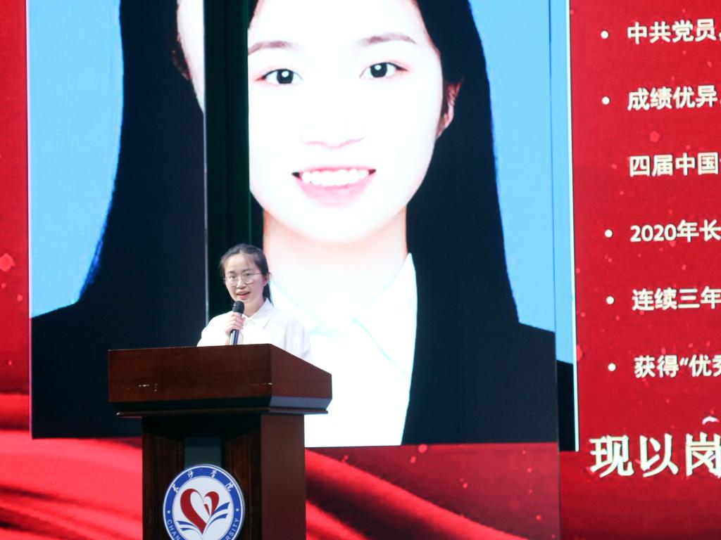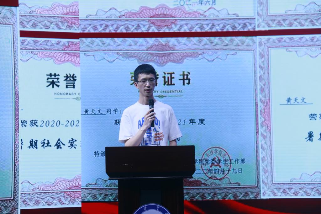 2020级物联网工程专业、第十七届芙蓉学子自强不息奖获得者李佳钰从他自己初入大学,初次体会大学生活的美好;到突然确诊疾病,积极配合治疗的乐观;到重返校园,乐观面对生活的勇气;再到现在努力学习,克服重重困难甚至努力帮助他人的决心,给在场的所有老师同学们带来了感动。他用自己的人生经历、至暗时刻,用自己的乐观、勇气、决心给全体计科学子做出了最好的示范!