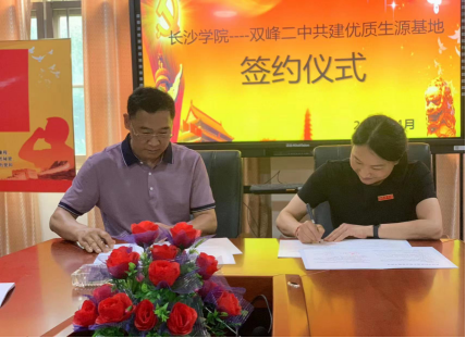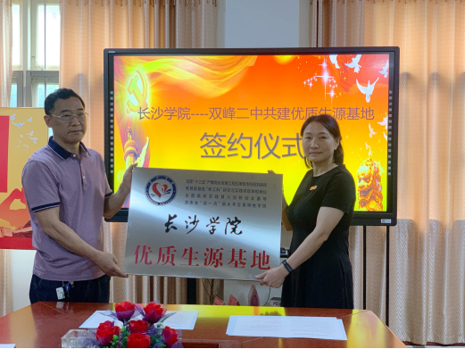 2023年4月19日下午,长沙学院“优质生源基地”授牌仪式在双峰二中办公楼三楼会议室举行。长沙学院计算机科学与工程学院党总支书记肖燕芳、团总支书记胡立、学工办主任余潇,双峰二中校长贺飞及学校班子成员、高三年级组长、班主任参加了活动。