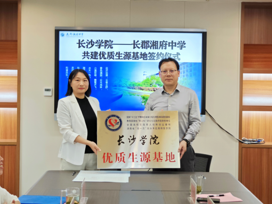 为了进一步加强我校与中学的交流合作,加强招生宣传力度,扩大学校影响力,拓宽生源渠道,提高我校生源质量。10月12日,计算机科学与工程学院党总支书记肖燕芳、招生就业处副处长谢艳、计算机科学与工程学院党总支副书记廖良梅、团总支书记胡立一行赴长郡湘府中学签订了长沙学院优质生源基地共建协议并举行了授牌仪式。