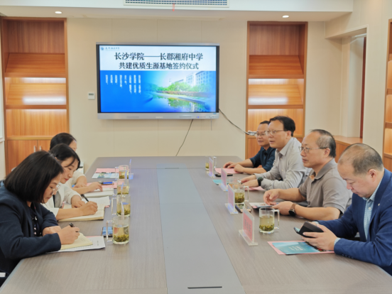 长郡湘府中学党委书记杨万维、校长蒋春华、副校长周珍跃、办公室主任马娟、教务处主任何长发等参加了签约仪式。