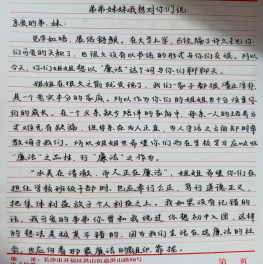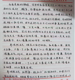 “‘水美在清澈,而人正在廉法’,姐姐希望你们在担任学校班干部时, 应奉行公正,笃行道德正义,把集体利益放于个人利益之上”22软件02周琪琪在给弟弟妹妹的家书中这样写道。