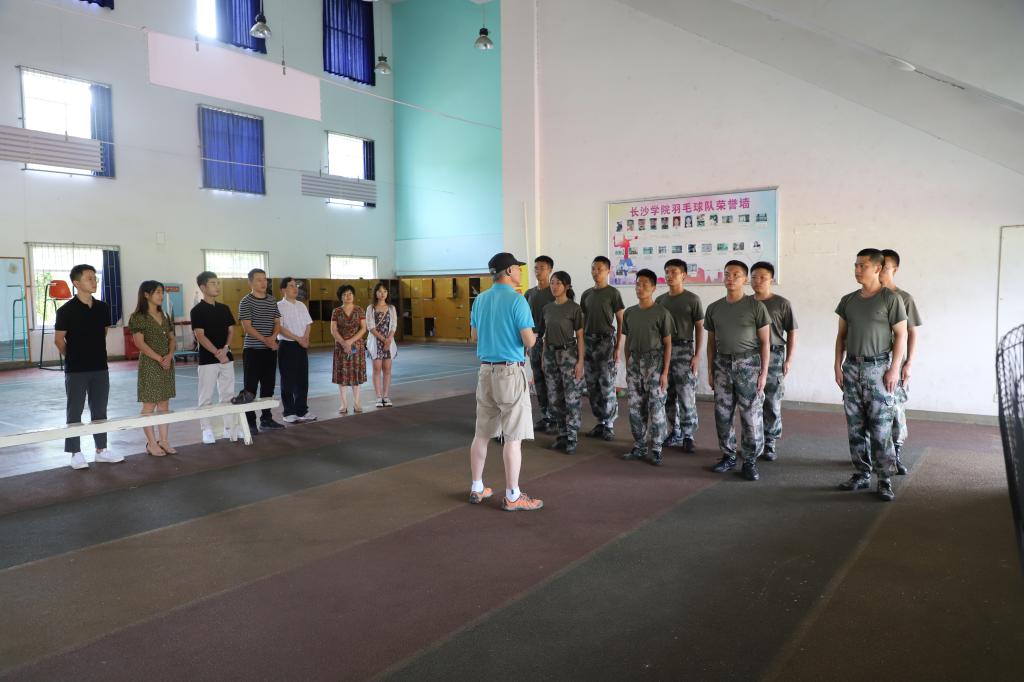 8月21日中午12时,长沙学院计算机工程与应用数学学院党总支书记曾一兵率队前往天健体育馆开展慰问2020级军训自训教员行动,党总支副书记廖良梅、副院长何文德、学工辅导员苏霖、付方彦、胡立、刘钰清、陈昊等陪同参加,慰问队伍代表学院师生给正在集训备战的10名军训自训教官送去防暑物资,带来暖心鼓励和走心问候。