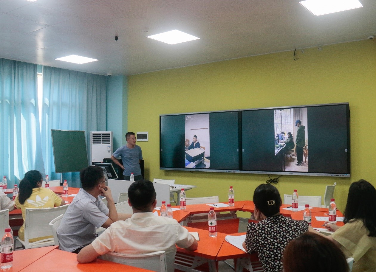 首先,活动由主持人苏霖进行主题分享,他就个人抖音平台的应用实践展开汇报,结合账号数据、视频创作历程,从专栏开设到整体定做,再到完善人设IP,介绍了网络育人的心得经验,他谈到:“创作初心是以兴趣爱好为出发点,将学生思想政治教育作为身份定位,在视频中传递真善美、讴歌正能量。”随后,与会的辅导员们参与了抖音脚本创作交流、研讨,现场气氛活跃热烈,思维火花交织碰撞。