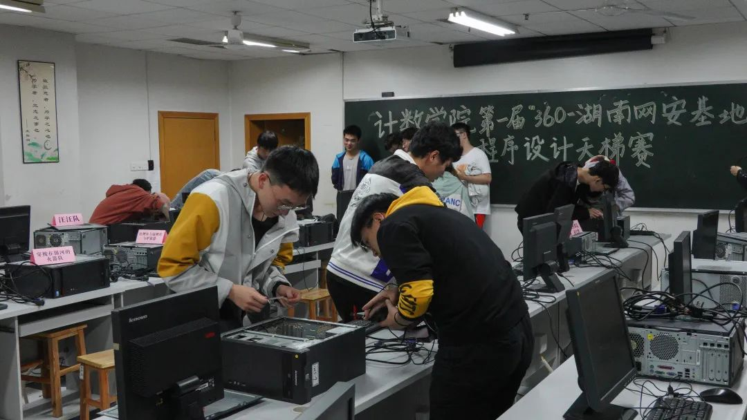 为充分展示计算机工程与应用数学学院学生良好的综合实践应用能力和团结向上的精神风貌,5月21日晚,计数学院第一届“360—湖南网安基地杯”团体程序设计天梯赛,在致远楼1413机房拉开序幕。日前活动已圆满结束。