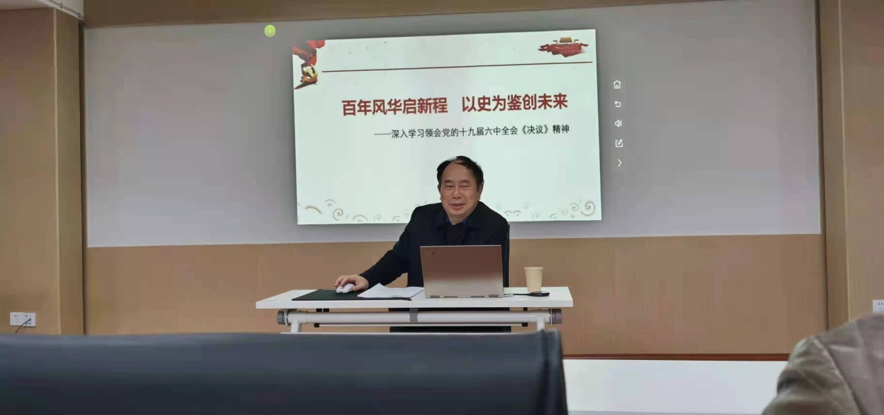 报告会上,黄立宏就深入学习领会党的十九届六中全会《决议》精神作了《百年风华启新程以史为鉴创未来》的专题辅导学习报告,他强调要深刻领会党的十九届六中全会的重大意义,深刻领会《中共中央关于党的百年奋斗重大成就和历史经验的决议》主要精神,深刻领会习近平总书记重要讲话精神。他指出,党的十九届六中全会全面总结了党的百年奋斗重大成就和历史经验,立意深远、思想深邃、内涵深刻,形成了一整套系统完整、逻辑严密的理论体系,具有很强的政治性、理论性、战略性、指导性。全会充分彰显了我们党牢记初心使命永葆生机活力的坚定决心,深刻揭示了“我们党过去为什么能够成功,未来怎样才能继续成功”的核心密码,响亮地发出了我们党以史为鉴,奋进新征程的时代号令。他指出,作为高校教师要牢记为党育人、为国育才的初心使命,从全会精神中汲取力量,以史为鉴、开创未来,努力走好教育强国新的赶考之路,培养担当民族复兴大任的时代新人。广大学生党员要心怀“国之大者”,扣好人生第一粒扣子,珍惜光阴、不负韶华,勿忘苦难辉煌,无愧使命担当,不负伟大梦想,脚踏实地书写人生华章,为实现中华民族的伟大复兴作出新的更大贡献。