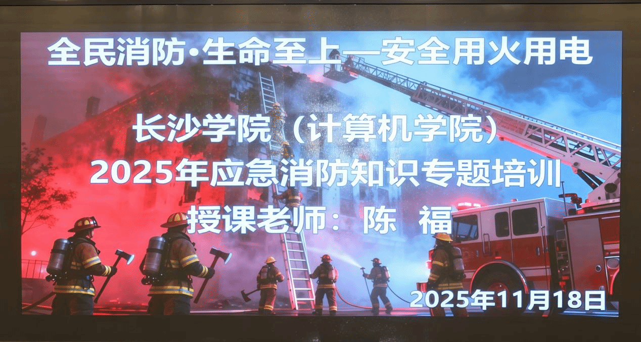 为深入学习贯彻习近平总书记关于应急管理和消防工作的重要指示精神,筑牢校园消防安全防线,11月18日12:30—13:30,计算机科学与工程学院联合湖南全安消防安全服务有限公司,在致远楼学术报告厅举办“计科筑安,应急强能”主题消防安全培训。活动由资深教官陈福主讲,学院党总支书记肖燕芳、副书记廖良梅及全体教职员工、寝室长共同参与。