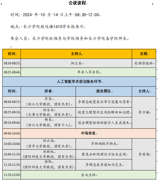 会议名称:潇湘论道——长沙学院人工智能学术前沿会议