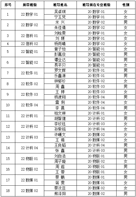 长沙学院计算机工程与应用数学学院关于2022级新生班导助理名单的公示
