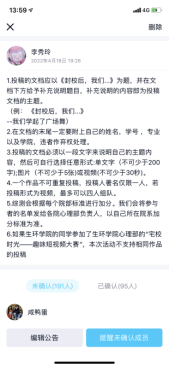 环节二:参与者在活动群填好报名表,通过文档(文字描述以及图片)并加附件(视频)的形式进行投稿。
