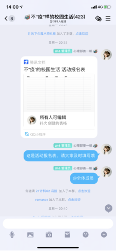 环节一:通过数字君的说说、心理委员群推送等宣传方式宣传,让同学们自主报名并加群。